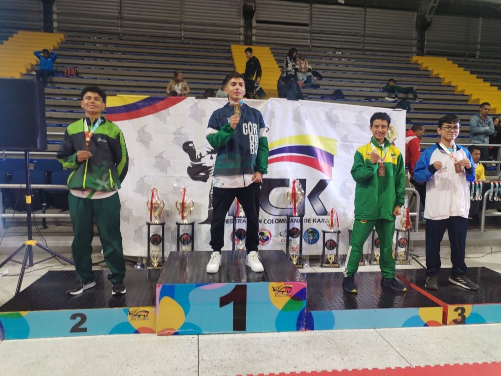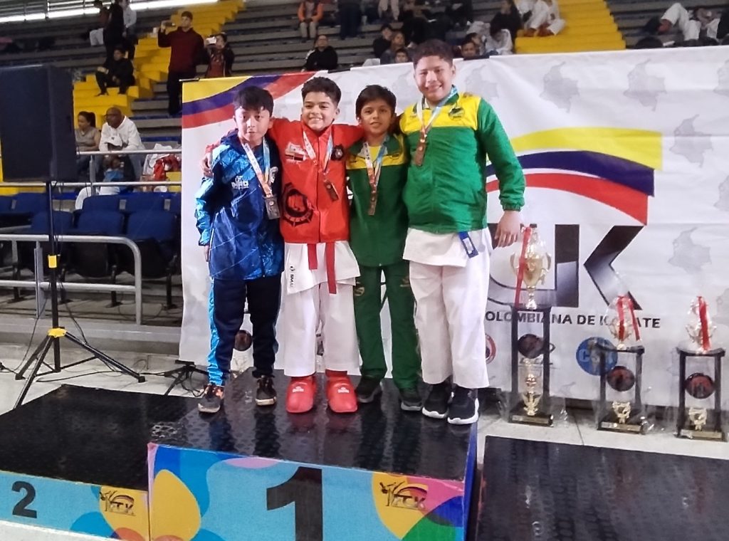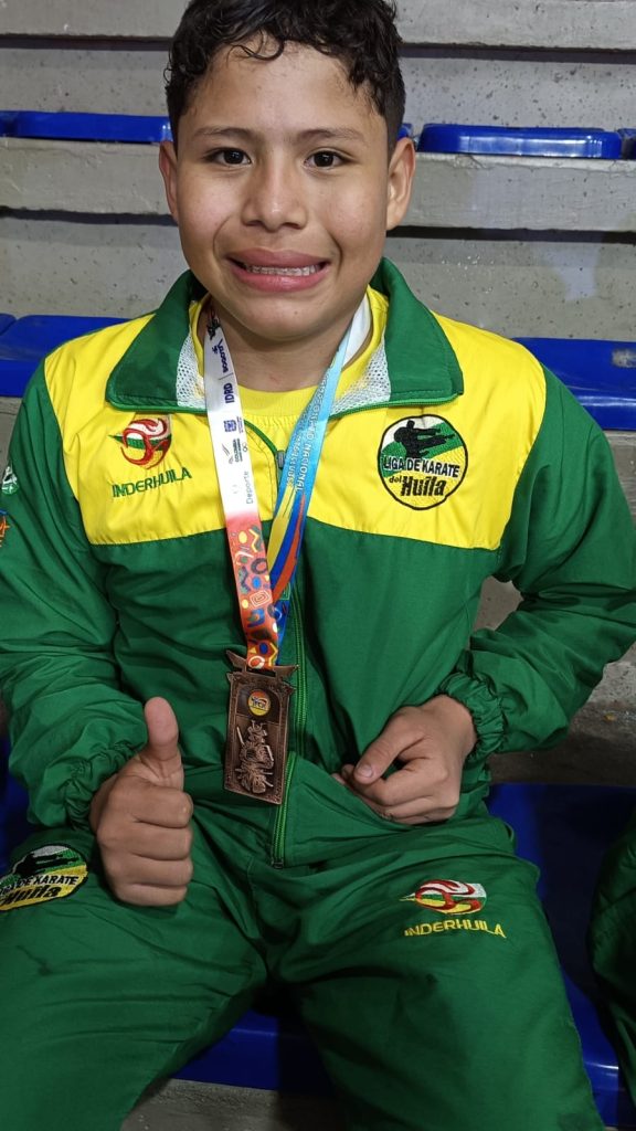 – Medallas de Bronce en las categorías kumite sub14 masculino intermedio +55kg y Kata sub14 masculino intermedio con el deportista Sergio David Narváez Gutiérrez.