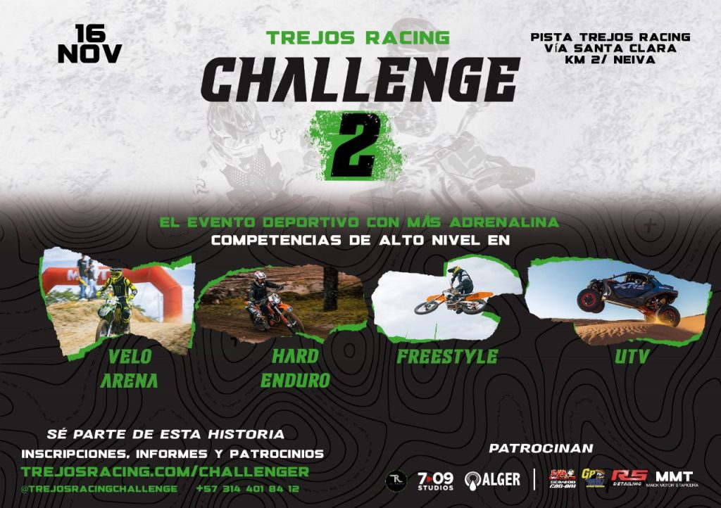 El rugir de los motores volverá a sentirse en el departamento del Huila con la segunda edición del Trejos Racing Challenge, un evento deportivo que reunirá a los amantes del motociclismo y la velocidad en un escenario especialmente acondicionado para la competencia. La jornada se realizará el 16 de noviembre en el kilómetro dos vía Santa Clara, jurisdicción de Palermo, muy cerca de Neiva.