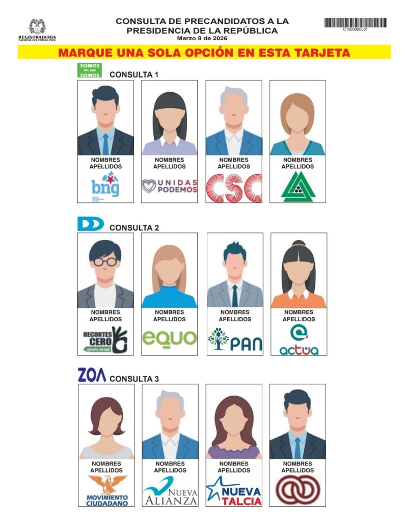 Durante la Comisión Nacional para la Coordinación y Seguimiento de los Procesos Electorales que se llevó a cabo en Bogotá, el registrador nacional del Estado Civil, Hernán Penagos, presentó el formato de la tarjeta electoral de las consultas para la escogencia de candidatos a la presidencia de la República, a realizarse el 8 de marzo.